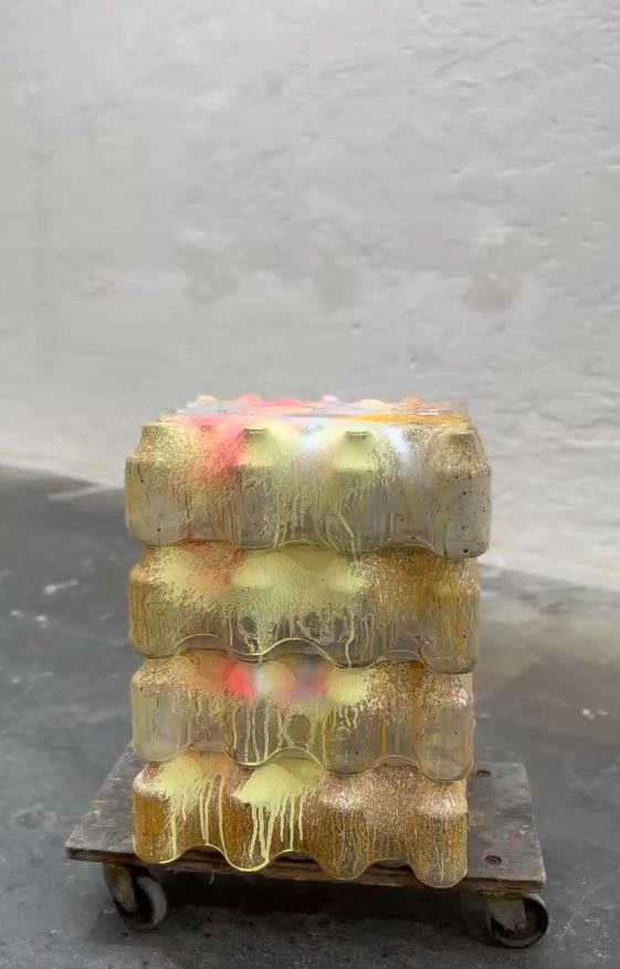 Arbeit 2: Industrial Glasspack 2019, Painting on plastic pack