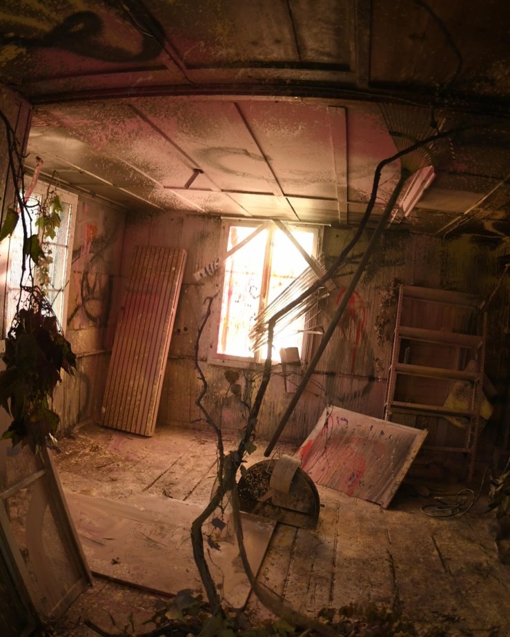 Die Künstler von #dblpng ließen ihre Kreativität in einem Malereimassaker auf die alten Scheunenwände los. Mit Farbresten verschiedener Unternehmen füllten sie ihre Feuerlösche und andere Malutensilien und mischten Farben und Texturen auf kühne Weise. Die alte, verfallene Scheune wurde zur Bühne einer atemberaubenden Darbietung zeitgenössischer Malerei. Dutzende Liter alter Farbe wurden in einem sorgfältig gewählten Farbkonzept aufgetragen, was zu einem beeindruckenden Zusammenspiel von Farben und Formen führte.
