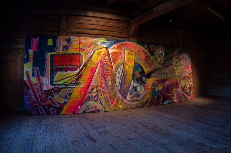 Dispersion, Canvas, 210 x 380 cm, (In der Scheune vom Trottenhof, Weinfelden)
