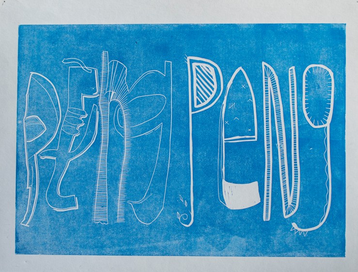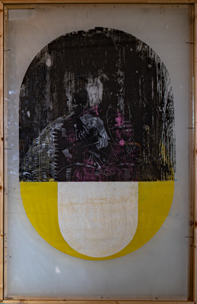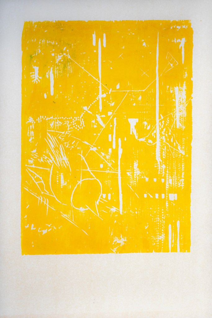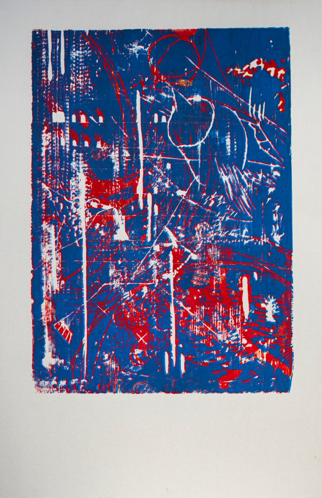 (a) 64 x 99.5 cm, Hochdruck, Monotypie, Transparentpapier, Vorderseite, Geglast